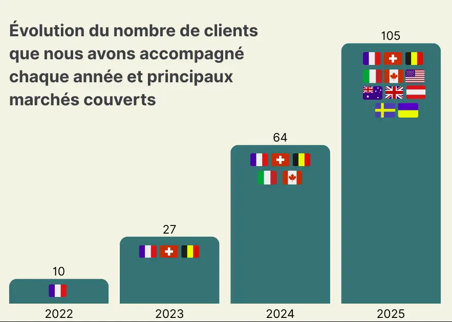 Entièrement en télétravail depuis les Alpes françaises, nous accompagnons des clients francophones et anglophones, principalement en France, en Suisse, dans d’autres pays d’Europe et au Québec et États-Unis, mais aussi dans d’autres pays des 5 continents.